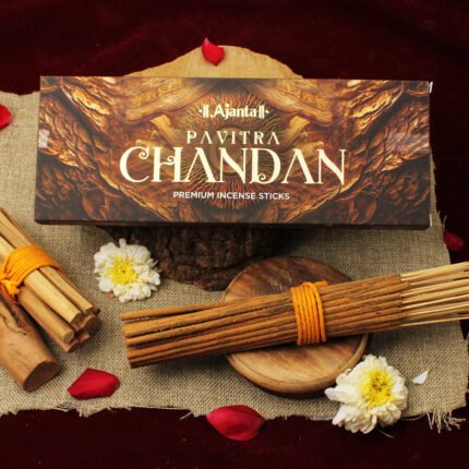 Experience the sacred purity of Kesar Chandan — a divine combination of Saffron & Sandalwood, known for their spiritual and calming properties. These Premium Masala Incense Sticks are carefully handcrafted using traditional methods to ensure a clean burn and long-lasting fragrance that instantly enhances your spiritual surroundings.